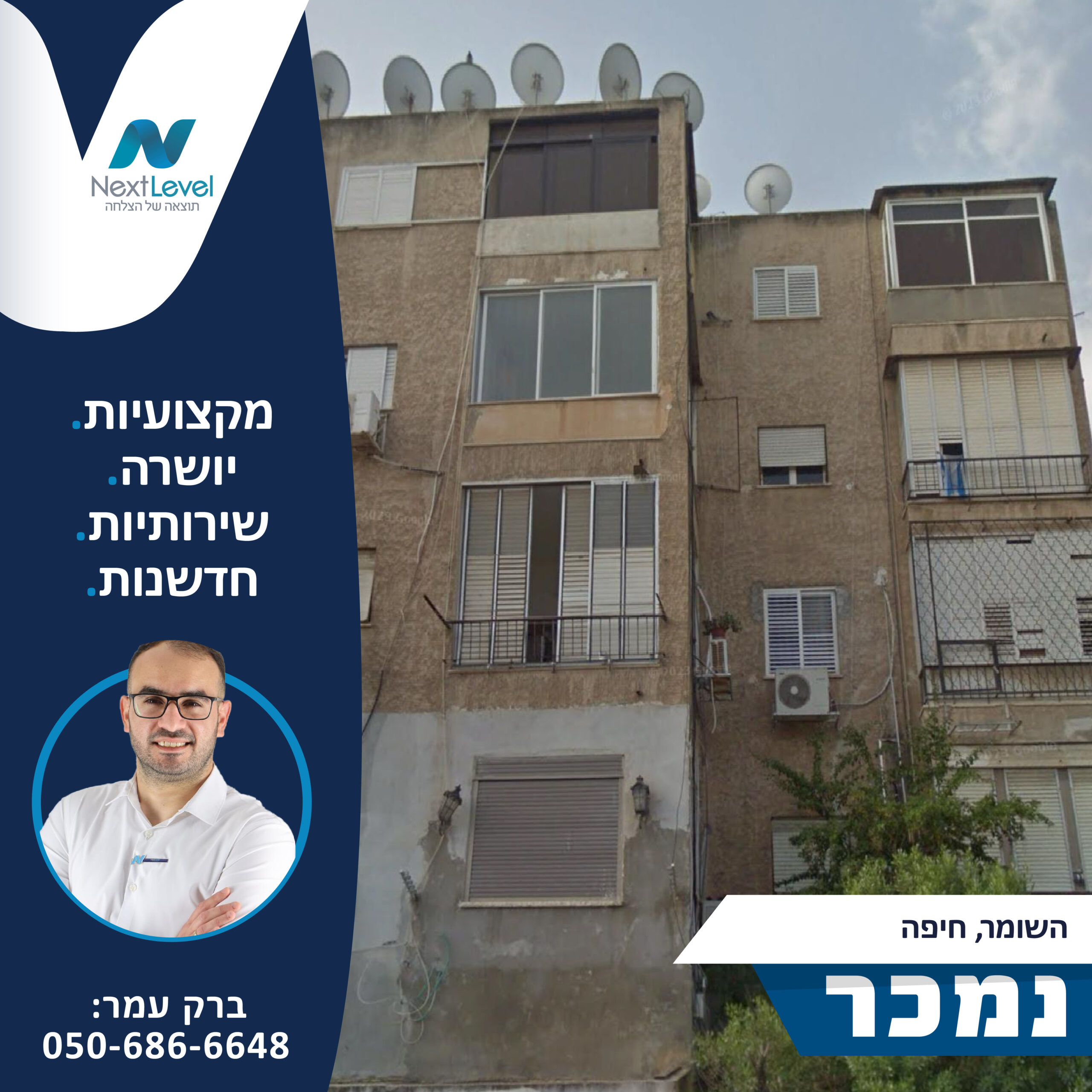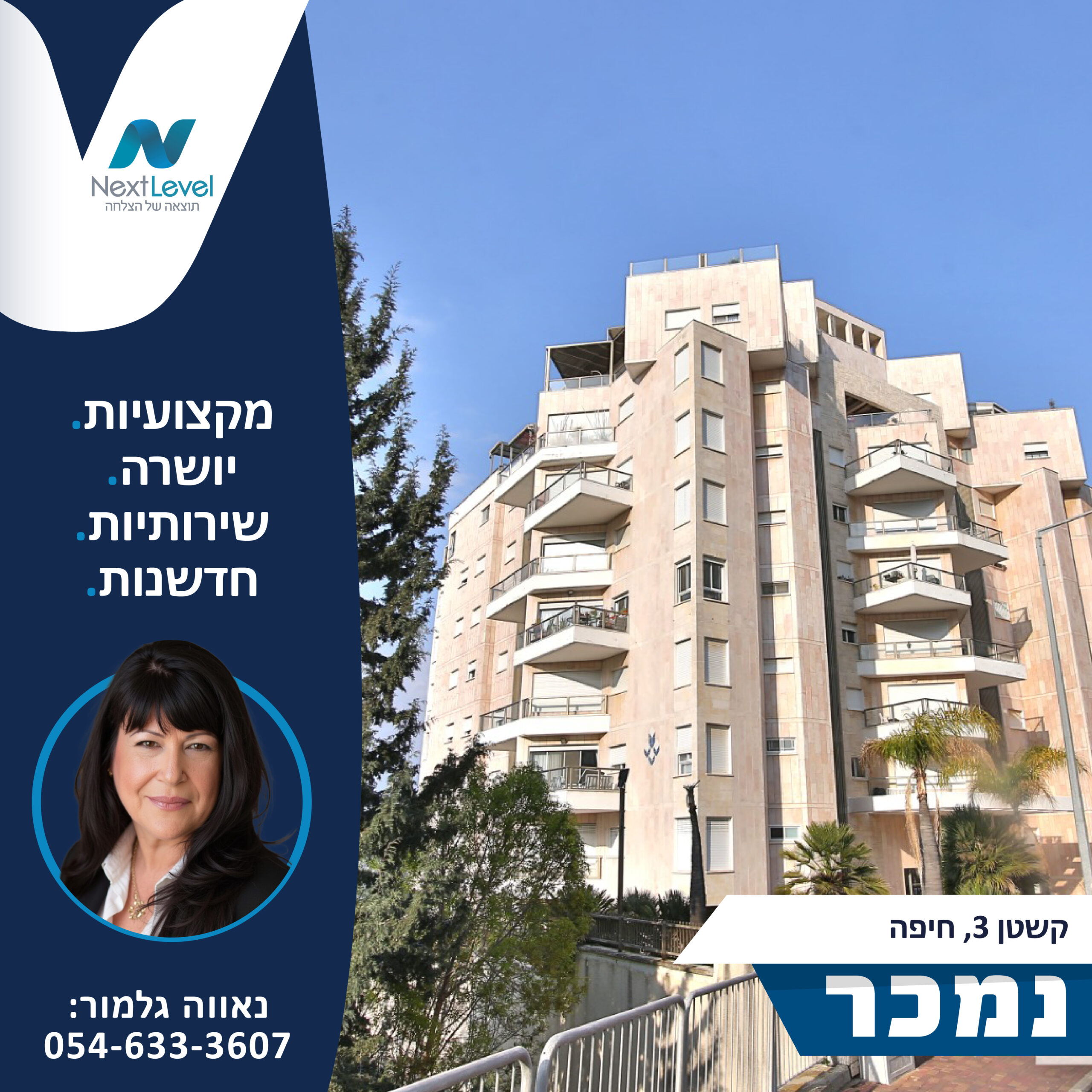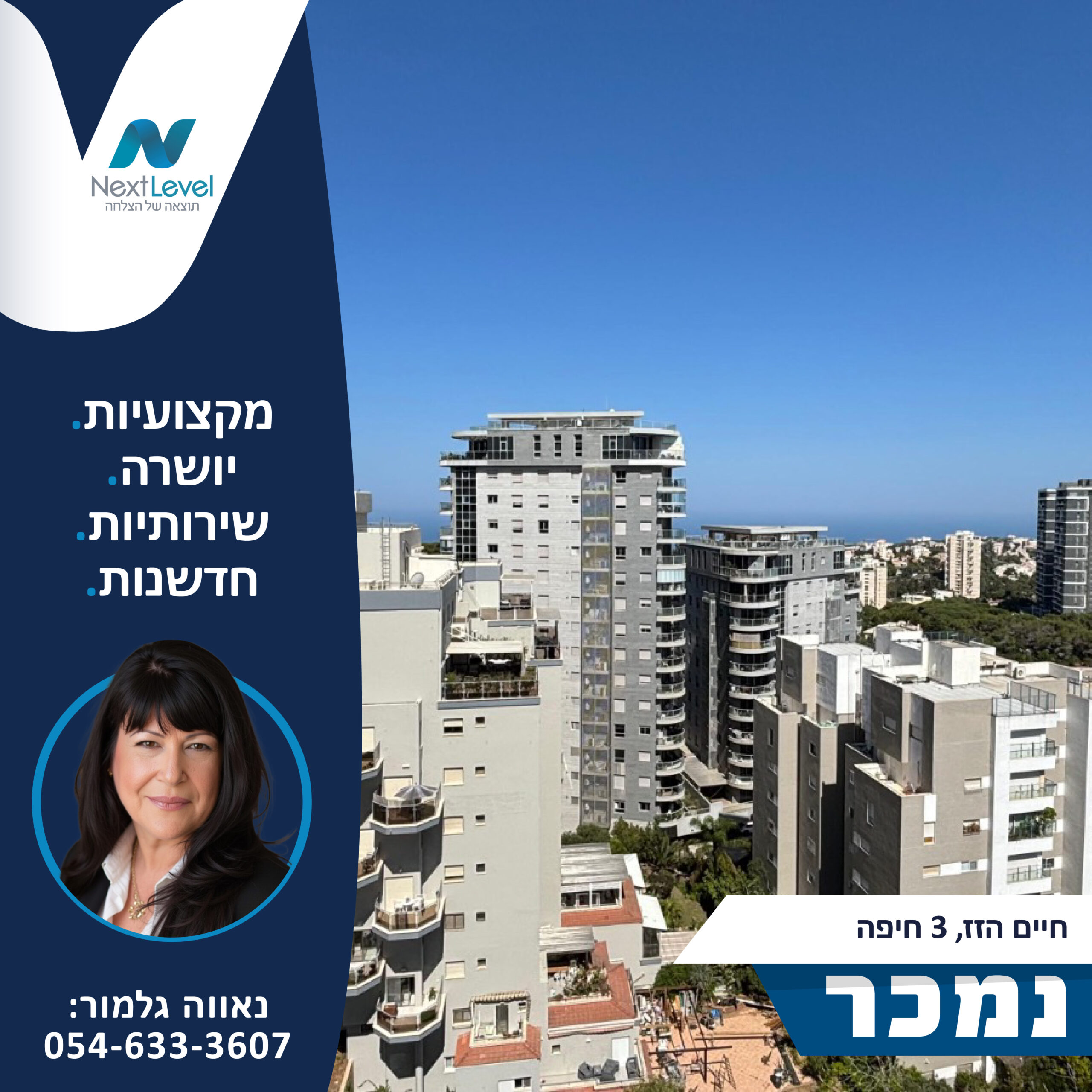 סניף חיפה/קריות  – סניף שמרכז את הפעילות באזור חיפה והקריות הסניף ממוקם ברח' שד ההסתדרות 271 , חיפה ומשתייך לרשת NEXT LEVEL אשר כוללת בתוכה סניפים הפרוסים ברחבי הצפון והשרון כאשר כל סניף מנוהל על ידי מנהל מקצועי בעל רקע נרחב בתחום הנבחר בקפידה ובדיוק רב. הרשת עוסקת במתן שירותי שיווק ותיווך לנכסים פרטיים ומסחריים ומעניקה מדי שנה למאות לקוחותיה הכוונה וליווי אישי באחת מהעסקאות החשובות בחייהם – מכירת / רכישת נכס ובנוסף, מייעלת עבורם את תהליך התיווך. במסגרת פעילותנו אנו מתמחים בעיקר במכירת דירות יד שנייה, דירות מקבלנים ובתים פרטיים ברחבי הארץ. נכון להיום, הרשת מונה למעלה מ- 60 יועצי נדל"ן פעילים שעברו הכשרה מקצועית ומדוייקת אשר יודעים לאתר במקצועיות רבה את צרכיהם ויכולותיהם האישיות והכלכליות של הלקוחות ולמצוא להם את הלקוח / הנכס האידיאלי ביותר. מתוך כך, כל יועץ נדל"ן ברשת מתמחה ועוסק באזור ממוקד וזאת מתוך מטרה ברורה – להכיר את הסביבה על כל רבדיה ולייצר ללקוחות שלנו את הרווח המקסימלי במינימום זמן. מאחורי הרשת ישנן מאות עסקאות נדל"ן מוצלחות בהן כלל הצדדים יצאו מרוצים. לשמחתינו, ההצלחה שלנו נובעת משיטות שיווק מנצחות וחסרות פשרות ובשילוב ישיר של שירות אמין, רציף ואישי לכל לקוח. בנוסף, אנו מחזיקים מאות נכסים בבלעדיות וכפועל יוצא מכך גם מאות קונים פוטנציאליים. צמיחתה והצלחתה המסחררת של Next Level מביאה אותה להיות הרשת השלישית בגודלה בענף תיווך הנדל"ן בצפון ואף בחודש מאי 2022 זכתה להיכנס לרשימת ה – TOP 10 של משרדי התיווך המובילים בקריות לפי מדד המתווכים של אתר "מדלן" – לוח הנדל"ן המוכר ביותר ! כרשת רצינית, גדולה, מוכרת וחזקה בתחום הנדל"ן אנו שואפים להציג את מיטב היצע הנדל"ן בפני משקיעים וקונים פוטנציאליים, לקצר את תהליכי הבחינה והרכישה של הנכס ולחסוך את זמנם של המעורבים בעסקה תוך כדי מקסום הרווח הפוטנציאלי באמצעות הליך מכירה מקצועי, יעיל ומודרני.